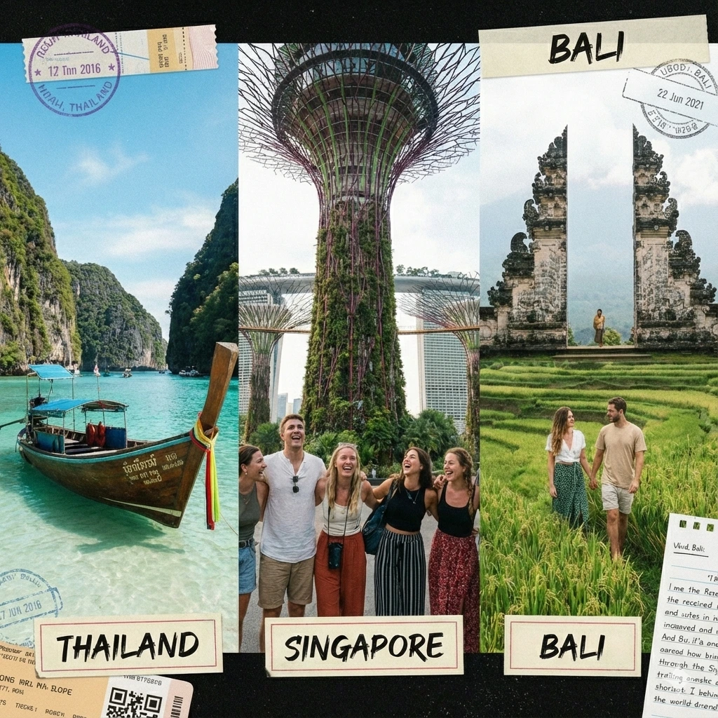 تور دور آسیا (تایلند + سنگاپور + بالی) 29 اسفند | 12 شب و 13 روز-گروهی